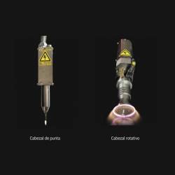 El sistema es compatible tanto con cabezal de punta como con cabezal rotativo, ofreciendo flexibilidad para adaptarse a distintas geometrías de pieza sin necesidad de cambiar de generador.