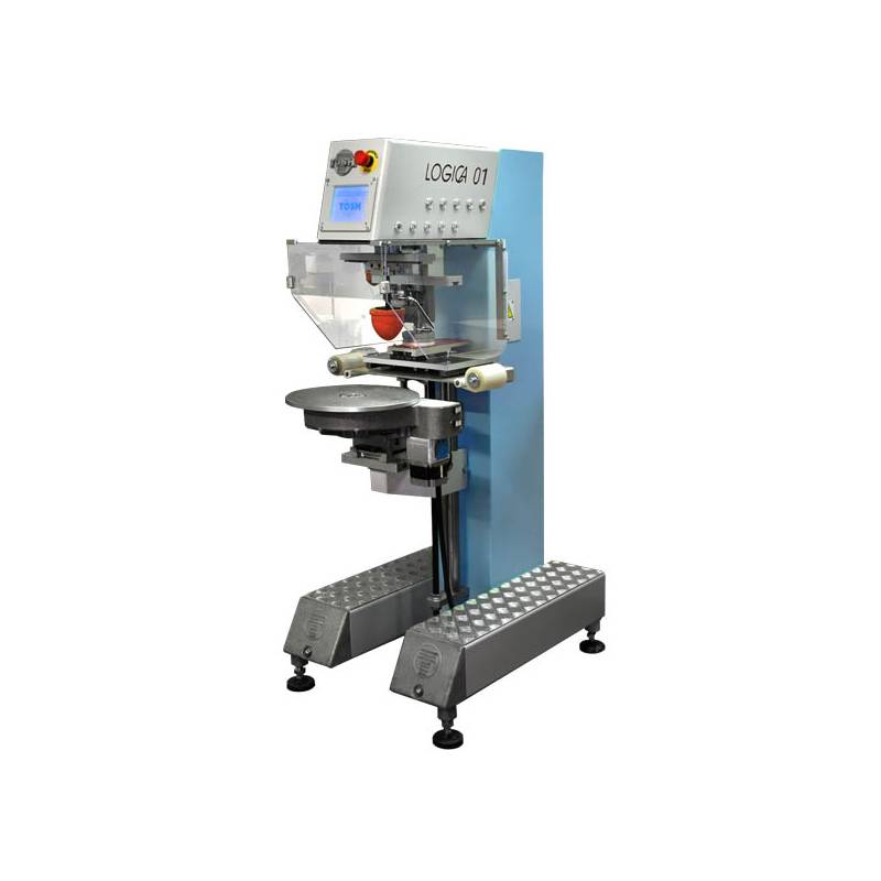 Logic 01 allows high quality industrial pad printing up to 2 colors (90 mm diameter) or up to 3 colors (70 mm diameter). The computerized numerical control (CNC) allows great precision in the operations, allowing a great performance in the pad printing of products present in the production lines (it offers a high printing speed, up to 1800 repetitions / h, however, this speed is decreased if the vertical stroke of the buffer is increased or delays are programmed in the operation). One of its strengths is its extremely low consumption: Only 300 W. Its small dimensions make it easily installable on any production line and easily accessible for an operator.